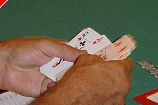 Sally es consciente que Jorgi tiene un trío. Aún así, tiene cuatro alternativas para formar un full house, y hay una tercera persona. Sally iguala.