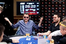 El torneo se quedaba en el Heads-up. Un mano a mano que no duraría durante demasiado tiempo. Cuando solo se habían disputado apenas 3 manos, Pedro Kaenel y Adrian Costin terminaban con todas sus fichas en el centro de la mesa.