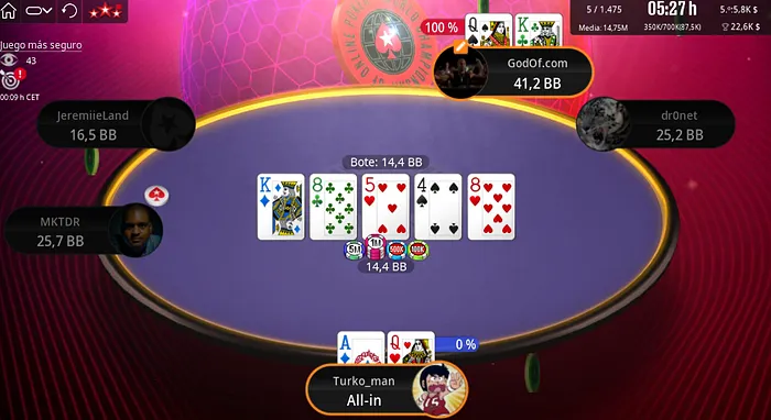 Solo ante el peligro, Jon Ánder se acabó plantando en el heads-up frente a "dr0net" con desventaja en el tanteo, una situación que no duró demasiado, al fin y al cabo no hay que olvidar que se trataba de un torneo con estructura Turbo, por lo que los stacks iban al centro con cierta facilidad. Pero en este caso, un cooler en toda regla giró la tortilla en favor del español: sus K♠K♣ aguantaron en las comunitarias contra el A♠10♣ de su rival, y una vez por delante, ya rematar la victoria, fue un mero trámite (cooler mediante, eso sí).