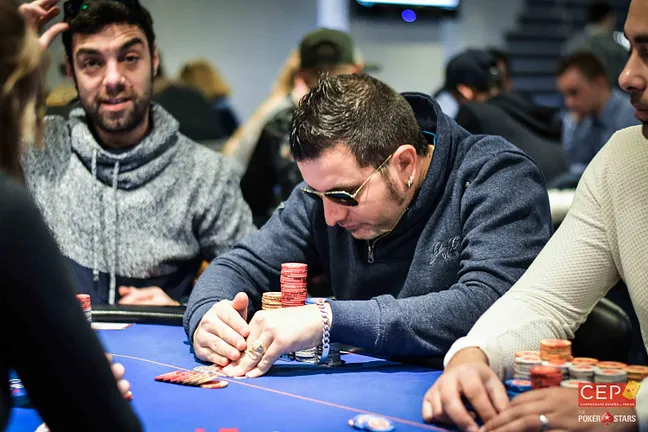Tras dejarse algunos puntos contra Joan Escrigas, el stack de Muñoz, un jugador que alcanzó la mesa final en la etapa de Peralada en 2017, quedaba sumamente mermado. Poco después, en una mano que Ramón Fuen abría en el botón, Muñoz se movía all in poniendo en riesgo su torneo.